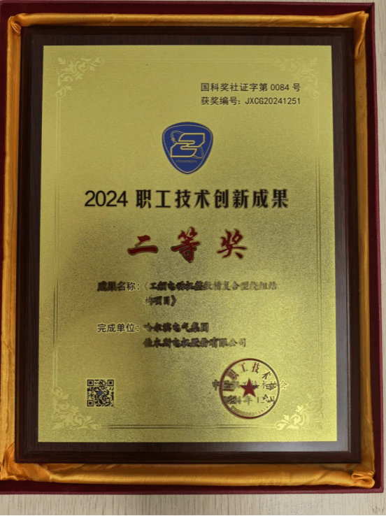近日,在全國職工技術創新成果評選活動中,哈電集團佳木斯電機股份有限公司申報的《工頻電動機整數槽復合型繞組結構項目》,憑借卓越的創新實用性,在眾多項目中脫穎而出,榮獲“2024年全國職工技術創新成果二等獎”。